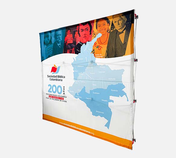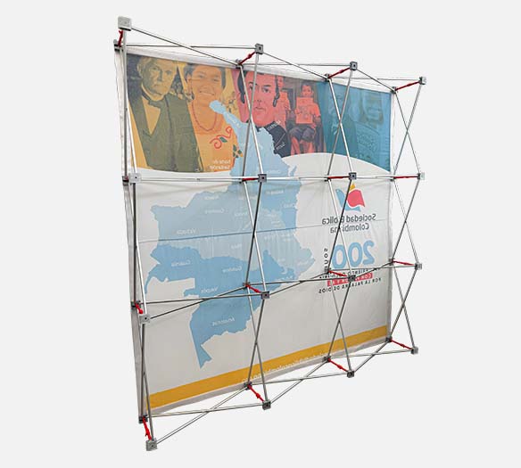 Nuestro Skyline Velcro es una estructura metálica plegable de aluminio con una variedad de tamaños para impresión en gran formato publicitario. Usada principalmente para exponer telas publicitarias en espacios interiores. Fácil de armar, liviana, resistente y llamativa.